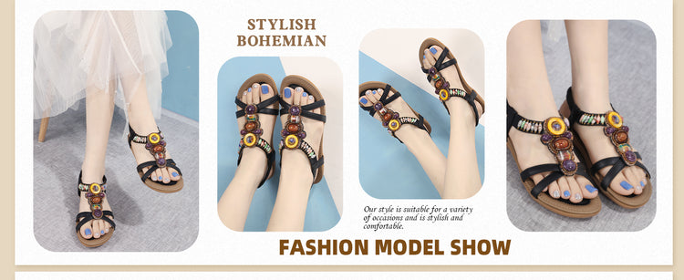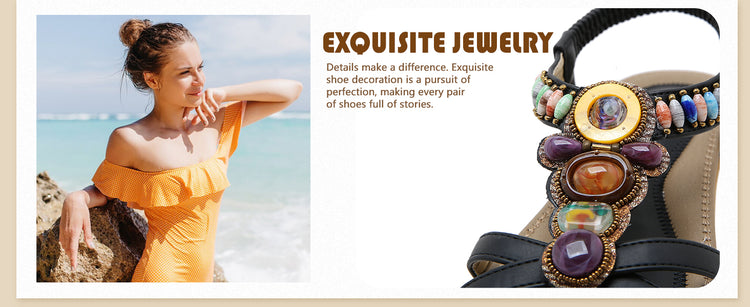 Colorful Gem Embellishments: Multi-color gems + gold-trimmed details, vintage color-blocking elevates your look instantly Comfortable Footfeel: Skin-friendly...
